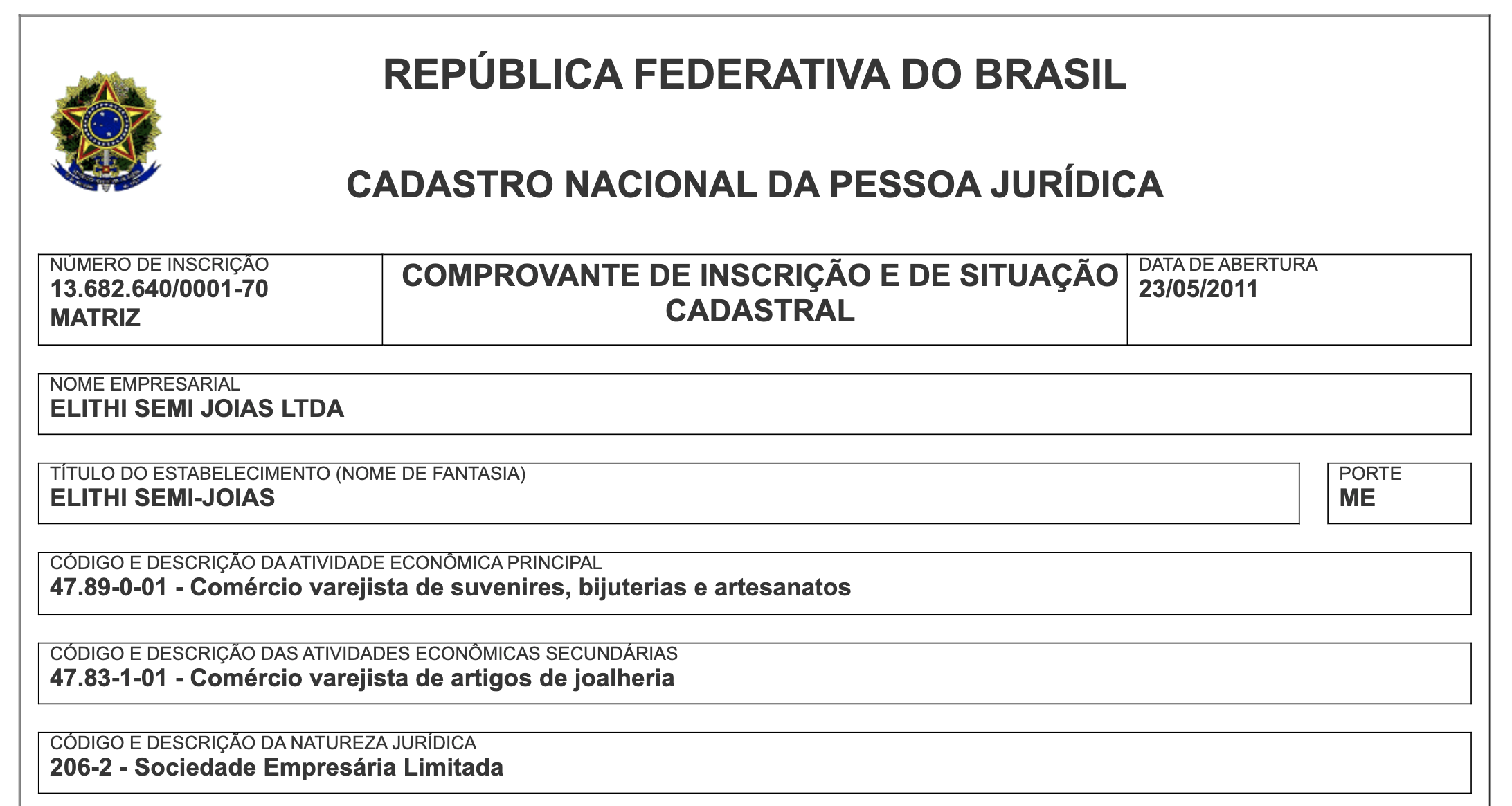 Nossa empresa também possui CNPJ regularizado, o que significa que estamos em conformidade com as leis fiscais e tributárias. Se tiver dúvidas, consulte nosso CNPJ nos órgãos reguladores: 13.682.640/0001-70.